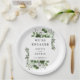 Olive Green Modern Country Floral Engagement Party Paper Plate