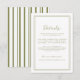 Trending olive green wedding details card for a modern elegant wedding celebration. This sophisticated insert reflects quiet luxury and modern botanical aesthetics, perfect for the refined contemporary bride planning a vineyard, garden, or coastal wedding. Style with olive envelope liners, gold foil accents, and striped stationery for a cohesive editorial wedding suite.