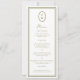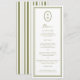 Olive Green Monogram Long Wedding Menu Card
