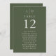 These olive green minimalist monogram wedding table number seating charts can be personalised with your monogrammed initials. Designed by Thisisnotme©