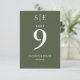 These chic modern olive green wedding table numbers can be personalized with your monogram initials, names and special date. Designed by Thisisnotme©