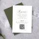 Elegant and minimalist olive green wedding RSVP card featuring romantic calligraphy script and a modern QR code for easy online responses. This stylish enclosure card is perfect for classic, botanical, or modern wedding themes, allowing guests to quickly scan and RSVP. The clean layout paired with a soft olive green palette creates a timeless and sophisticated look for your wedding stationery suite.