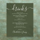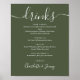 This elegant script minimalist olive green drinks menu sign is perfect for your wedding celebration. Designed by Thisisnotme©