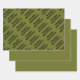 Gift Giving Package Wrapping Paper set of 3 sheets with 1 sheet having customisable template Happy Birthday Repeat Pattern typography and all sheets printed with Olive Green Solid Colour background illustration and select products collection by TheFabricSeal print on demand shop at Zazzle.com #ZazzleMade https://www.zazzle.com/store/thefabricseal