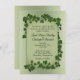 A lovely invitation with borders of green leaves. Put the first names of the couple on one side with all the wedding information and salutation from the mother and father of the bride.
