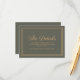 Elegant olive green wedding details card that gives wedding website details and allows your guests to RSVP through your site. Text is completely customisable, so this card can be used for any special instructions or information you would like to share with your guests.