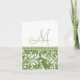 Elegant Olive Green and White floral Damask Thank You Wedding Cards with personalised monogram.