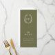 Olive green and white wedding dinner menu. Edit this 4 course menu with your own meal option wording. Modern yet classical hand drawn oval leaves design. © Original oval drawing and design by Sarah Trett for www.mylittleedenweddings.com exclusively on zazzle.