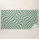Olive Green & White Warped Chequered Pattern Beach Towel