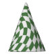 Olive Green & White Warped Chequered Pattern Party Hat