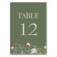 Olive Green Wildflower Wedding Table Number