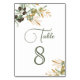 Elegant table number card featuring beautiful leaves and modern typography.