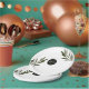 This design features olive leaves and branches. The beautiful greenery of the olive leaves compliment the elegant black modern circle shape encircling the wedding date. A perfect fusion of modern and chic with rustic olive colours. Olive green, black and white are a perfect match for a Mediterranean themed wedding. Unique wedding plate design with modern elements. Matching wedding invitations and other stationery items are also available.