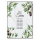 A beautiful design with rustic olive leaves and olives on a Mediterranean style Greek Island white wash wall. An elegant vintage wedding table number perfect for Greek Island, Italian and Mediterranean style weddings. Matching wedding invitations and other stationery items are also available. Customise the number and guest names and purchase each tables number individually according to how many table numbers you need.