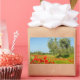 Rectangular photo sticker with an old olive tree in a poppy field full of vibrant red poppies in a landscape in Tuscany, Italy.