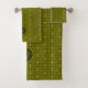 A classic houndstooth design in not-so-classic shades of olive green creates a fun and updated pattern with a final accent of a metallic-like gold mixed in to create a design that will really pop. Customise the monogram on the hand and bath towel for a unique decoration for your bathroom. These items can be bought as a matching set or as individual pieces.