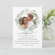 Announce the postponement of your wedding and new plans with this Elegant botanical invitation feature a favourite engagement photo encircled by a round wreath of olive and leaves in an elegant watercolor palette of greys and green