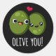 Olive You Funny Love Pun Dark BG Classic Round Sticker