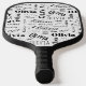 A personalised Pickleball paddle, specially crafted to feature the name "Olivia" This remarkable gift choice showcases a background pattern with the letter "O," set against a dynamic palette of black, white, and grey.
