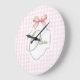 Olivia Personalized Pink Bow & Gingham Print Large Clock