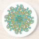 Buddhism coaster with Om (aum) mandala damask symbol.