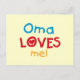 Oma Loves Me T-shirts, cards, stickers, bodysuits bags, and more with colourful red, yellow, and blue text and heart design. These Oma Loves me apparel and gift items will make Oma smile!