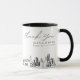 Modern Omaha skyline coffee mug favour gift with "thank you" script. The design showcases a stunning sketch with the ability to customise your names and exact location. Enter the Zazzle design tool for additional customisations.