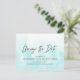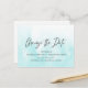 This design features a light blue watercolor ombre background with "change the date"" in casual chic handwritten font. This template provides space for your names, date and location. On the reverse a handy space to hand address to the recipients, and a custom message.