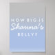 Ombre Blue and Silver Personalized How Big is Mommy's Belly Baby Shower Game Sign.