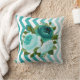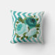 Ombre Chevron Floral Rose Bouquet | aqua teal Cushion