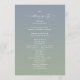 Simple Ombre Dusty Blue & Green Wedding Ceremony Program. This modern minimal Order of Services Card is simple classic and elegant with a subtle ombre gradient fade and a pretty signature script calligraphy font with tails. Shown in the new Colorway. Available in several colour options, or feel free to edit the colours from within the editor (click customise further while personalising).