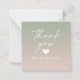 Ombre Gradient Green & Pink Wedding Thank You Cards. This modern wedding or any event Thank You Card design is pretty with a soft fading colour Background and trendy signature calligraphy script fonts. Add Your Custom text to the back side. Shown in the new Wedding Colour Palette. The Chic Minimal Wedding collection is sure to make your wedding memorable and beautiful!