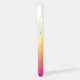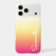 This stylish phone case has a hot pink yellow to white ombre fade. Your name is displayed in a modern hand written script font.