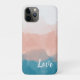 A graceful ombre gradient pattern in a chic mosaic blue and coral pink. Personalise this subtle watercolor design by adding your own words to the text template, or keep the sentimental word: Love.