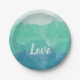 Ombre Turquoise Blue and Neo Mint Love Gradient Paper Plate
