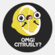 OMG Citrusly Funny Fruit Citrus Pun Dark BG Classic Round Sticker