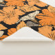 On black background. Raster hand drawn painting of hibiscus flowers in beige and orange colours.