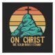 On Christ the Solid Rock I Stand, this Christian design features a Reto sunset look with a Christian Cross and Text Saying, "On Christ the Solid Rock I Stand".
