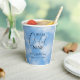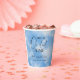 Elegant watercolor blue calligraphy Bridal Shower Paper Cup with title "She is On cloud nine".