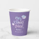 Dreamy 9th birthday party paper cup featuring illustration of pink, blue, and purple clouds with a typography text that says "on cloud nine."