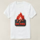 A small campfire in a papercraft style in bright red and orange colours with the text on fire in bright red letters on a black rectangle underneath.