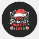 On My Husbands Naughty List Christmas Classic Round Sticker