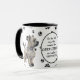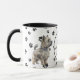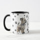An adorable Cairn Terrier Dog stands on two sides of this mug. The text between the two images says "On the 8th day, God created the CAIRN TERRIER and called it VERY GOOD". The dog images and the white oval banner containing the text fields are placed on a white background with black paw prints.
