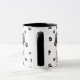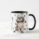 An adorable little Shih Tzu Dog sits on two sides of this mug. The text between the two images says "On the 8th day, God created the SHIH TZU DOG and called it VERY GOOD". The dog images and the white oval banner containing the text fields are placed on a white background with black paw prints.