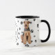 A beautiful Airedale Terrier dog looks out at you from two sides of this mug. The text between the two images says "On the 8th day, God created the AIREDALE TERRIER and called it VERY GOOD". The dog images and the white oval banner containing the text fields are placed on a white background with black paw prints.