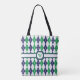 Argyle goes 8-bit with this classic navy blue, kelly green, and white colour scheme with a light grey contrast stitch creating a perfect pattern for the golf course. Customise the monogram with your own initial to make a unique accessory. This bag is available in multiple sizes and both tote bag and cross body bag styles.