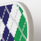 Argyle goes 8-bit with this classic navy blue, kelly green, and white colour scheme with a light grey contrast stitch creating a perfect pattern for the golf course. Customise the monogram with your initial to create a unique paddle for your pickleball games.