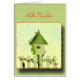 A family of birds is peeking at a woodpecker in a rose garden on this greeting card. This greeting card has a shadowed image printed on a neutral sage green background. Customise your greeting on the front of the card. You can change the font size, colour and greeting. Or, remove it altogether. You can further customise it by adding another message to the inside of the card. Be sure to view all of these birdhouse cards in my Nesting Instinct collection. This pretty collection of bird house cards includes hummingbirds, cardinals, woodpeckers and Eastern bluebirds.
