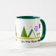 All of your favourite road map symbols printed on both sides of the mug with the words "On the Road Again" printed below. Great mug to sip hot coffee in the RV that's parked in a mountain campground, rest area, or your driveway. Sometimes it just takes getting out of the house even if you're just imagining you're in that beautiful park.