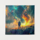 This image was created while thinking of the simulation hypothesis. I wondered what it might look like for a creator of a simulated universe to be outside of the universe, standing on it, rather than in it.